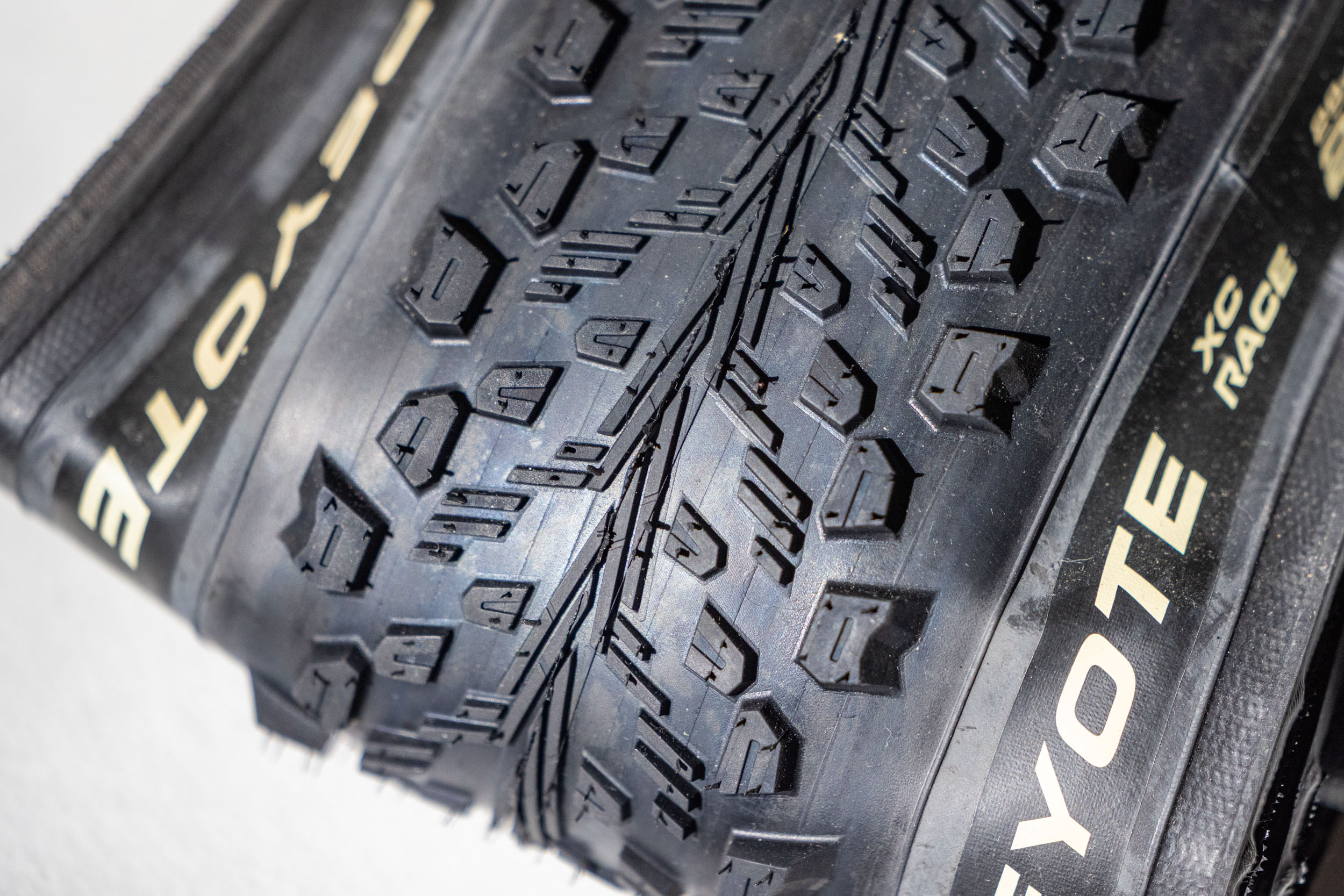 ה-Vittoria Peyote החדש, ששוחרר באביב 2024, כולל עדכון משמעותי מחזרות קודמות של הצמיג. עם מעטפת מירוץ חדשה ודרכי דריכה בצורת V שנועדו לשפוך בוץ מהמרכז, ה-Peyote ממוקמת בתור היצע אופני ההרים המהירים והפחות מוכווני כבידה של המותג. זמין ברוחב של 29 x 2.25 אינץ' ו-2.4 אינץ', מתחם ה-XC Race שלהם הוא היקר יותר מבין שני הפייוטים. ה-XC Trail הוא מעט פחות יקר וזמין בטווח רחב יותר של רוחבים, 2.1 אינץ' עד 2.6 אינץ', אבל הוא כבד יותר ב-150 גרם. בבדיקה שלי, ה-Peyotes נמדדו לרוחב של 2.2 אינץ' על חישוקים פנימיים של 25 מ"מ והגיעו ל-738 גרם – 48 גרם מעל המשקל המפורסם של 690 גרם.